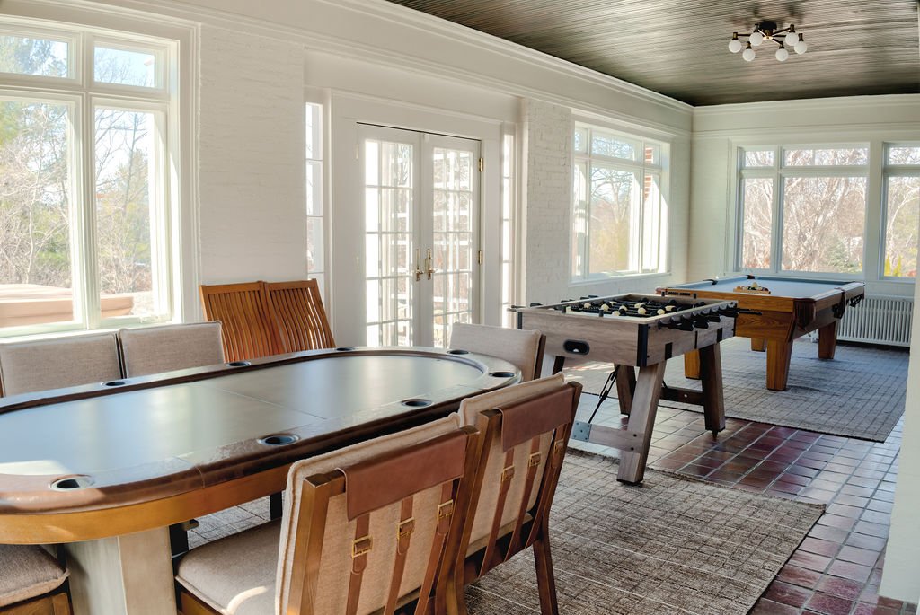 The year-round hot tub is adjascent to the game room to keep the party going outside.